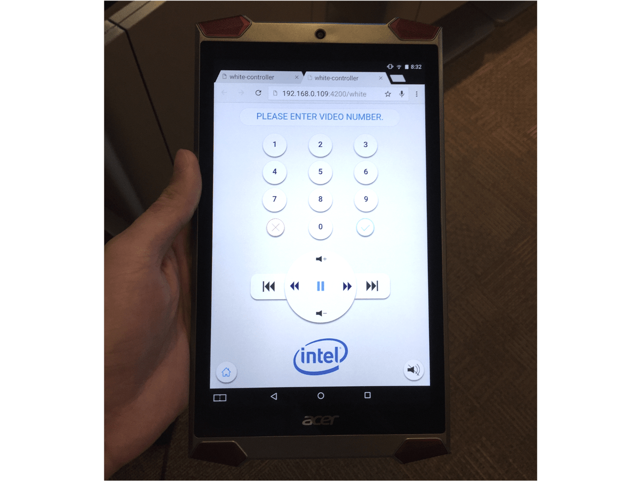 約沛使用 Cordova 框架開發出跨平台、輕量版的應用程式,讓在展示間的人員,能夠輕鬆地使用手機或平板進行所需影片的播放,同時亦多出更多時間向客戶進行產品說明,讓客戶感受到 Intel 的專業與優雅。